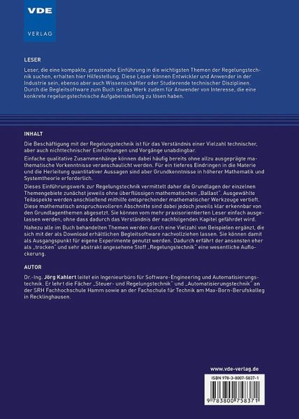 Die Beschäftigung mit der Regelungstechnik ist für das Verständnis einer Vielzahl technischer, aber auch nichttechnischer Einrichtungen und Vorgänge unabdingbar. Einfache qualitative Zusammenhänge können dabei häufig bereits ohne allzu ausgeprägte mathematische Vorkenntnisse veranschaulicht werden. Für ein tieferes Eindringen in die Materie und die Herleitung quantitativer Aussagen sind aber Grundkenntnisse in höherer Mathematik und Systemtheorie erforderlich.Dieses Einführungswerk zur Regelungstechnik vermittelt daher die Grundlagen der einzelnen Themengebiete zunächst jeweils ohne überflüssigen mathematischen "Ballast". Ausgewählte Teilaspekte werden anschließend mithilfe entsprechender mathematischer Werkzeuge vertieft. Diese mathematisch anspruchsvolleren Abschnitte sind dabei jedoch jeweils klar erkennbar von den Grundlagenthemen abgesetzt. Sie können vom mehr praxisorientierten Leser einfach ausgelassen werden, ohne dass dadurch das Verständnis der nachfolgenden Kapitel gefährdet wird. Der Realisierung von Reglern wird ein eigenes Kapitel gewidmet. Berücksichtigt wird die Realisierung von Analogreglern, stetigen linearen Reglern (elektronisch), bis hin zu Digital-, SPS- und schaltenden Reglern.Nahezu alle im Buch behandelten Themen werden durch eine Vielzahl von Beispielen ergänzt, die sich mit der beigefügten Begleitsoftware nachvollziehen lassen. Sie können damit als Ausgangspunkt für eigene Experimente genutzt werden. Dadurch erfährt der ansonsten eher als "trocken" und sehr abstrakt angesehene Stoff "Regelungstechnik" eine wesentliche Auflockerung.