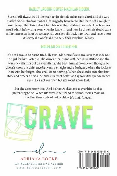 Hadley Jacobs is over Machlan Gibson. Sure, she'll always be a little weak to the dimple in his right cheek and the way his five o'clock shadow makes him ruggedly handsome. But that's not enough to cover every other thing about him because they all drive her nuts. Like how he won't admit he's wrong even when he knows it and how he drives his stupid car a million miles an hour on wet asphalt. As she rolls back into town and takes a seat at Crave, she won't take the bait. She's over him. Mostly. Machlan isn't over her. It's not because he hasn't tried. He reminds himself over and over that she's not the girl for him. After all, she drives him insane with her sassy attitude and the way she calls him out on everything. She beats him at poker, even though she doesn't know the difference between a straight and a flush, and when she looks at him with her bright, blue eyes, it's unnerving. When she climbs onto that bar stool and orders a drink, he puts it in front of her and ignores the sparkle in her eyes. He's not over her, but she won't know that. But she does know that. And he knows she's not as over him as she's pretending to be. When life forces their hand this time, there's more on the line than a pile of poker chips. It's their forever. Crave is a second-chance standalone romance in a new small-town, blue-collar series from USA Today best-selling author Adriana Locke. Join listeners everywhere as they fall in love with the delicious Gibson Boys.