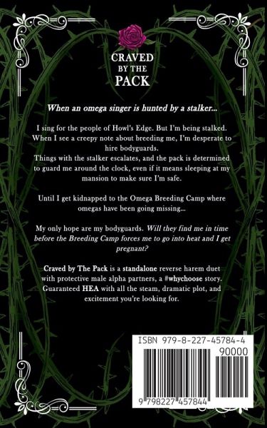 When she's stalked by a crazed fan and needs to hire bodyguards... Lacy I never thought being the first omega singer would bring out the creeps right? Well, now I'm being stalked, creepy letters left at my house, and a hooded man attending my every concert. It's finally time to hire bodyguards. The bodyguard pack is determined to guard me around the clock...even if it means sleeping at my mansion and knotting me every night. Ryder I'm not happy that our new client is a pretty little omega. We need to keep things professional between us. But I can't help it when I watch her through the cameras I install in her house. Her omega scent calls to us, and we can't help but respond... Things only escalate when Lacy is kidnapped by a secret organization, and her only hope is her bodyguards. Will they find her in time before the Breeding Camp forces her to go into heat? Craved by The Pack is a standalone reverse harem with protective male alpha partners, a #whychoose story. Guaranteed HEA with all the steam, dramatic plot, and excitement you're looking for. Reading the books in order will ensure the best reading experience! Book 1: Stolen by The Pack (Tiana's story) Book 2: Auctioned to The Pack (Keera's story) Book 3: Princess for The Pack (Lyra's story) Book 4: Betrayed by The Pack (Vanessa's story) Book 5: Matched to The Pack (Jade's story) Book 6: Knotted by The Pack (Alana's story) Book 7: Craved by The Pack (Lacy's story) Book 8: Freed by The Pack (Olivia's story)