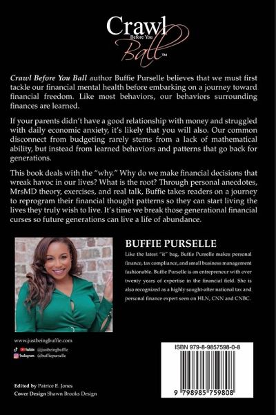 Financial Freedom and Financial Literacy Begins by Reprogramming Our Financial Thought Patterns Crawl Before You Ball author Buffie Purselle believes that we must first tackle our financial mental health before embarking on a journey toward financial freedom. Like most behaviors, our behaviors surrounding finances are learned. If your parents didn't have a good relationship with money and struggled with daily economic anxiety, it's likely that you will also. Our common disconnect from budgeting rarely stems from a lack of mathematical ability, but instead, from learned behaviors and patterns that go back for generations. This book deals with the "why?" Why do we make financial decisions that wreak havoc in our lives? What is the root? Through personal anecdotes, MrsMD theory, exercises, and real talk, Buffie takes readers on a journey to reprogram their financial thought patterns so they can start living the lives they truly wish to live. It's time we break those generational financial curses so future generations can live a life of abundance.