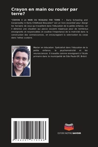 "CRAYON À LA MAIN OU ROULEAU PAR TERRE ? - Early Schooling and Corporeality in Early Childhood Education" est un livre essentiel pour élargir les horizons de ceux qui travaillent dans l'éducation de la petite enfance, car il dénonce une situation qui passe souvent inaperçue pour de nombreux enseignants et responsables et soulève l'importance de la motricité dans la construction des connaissances, en encourageant la valorisation du corps dans l'ethos scolaire.