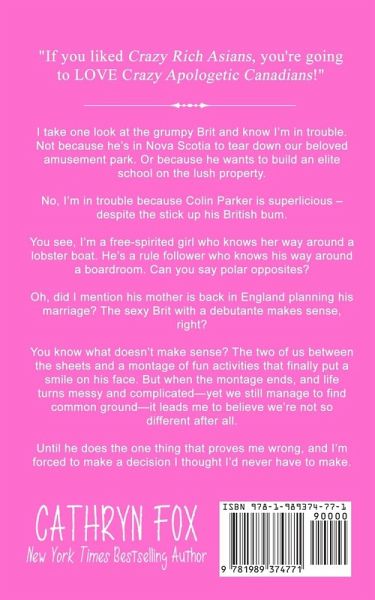 "If you liked Crazy Rich Asians, you're going to LOVE Crazy Apologetic Canadians!" I take one look at the grumpy Brit and know I'm in trouble. Not because he's in Nova Scotia to tear down our beloved amusement park. Or because he wants to build an elite school on the lush property. No, I'm in trouble because Colin Parker is superlicious - despite the stick up his British bum. You see, I'm a free-spirited girl who knows her way around a lobster boat. He's a rule follower who knows his way around a boardroom. Can you say polar opposites? Oh, did I mention his mother is back in England planning his marriage? The sexy Brit with a debutante makes sense, right? You know what doesn't make sense? The two of us between the sheets and a montage of fun activities that finally put a smile on his face. But when the montage ends, and life turns messy and complicated-yet we still manage to find common ground-it leads me to believe we're not so different after all. Until he does the one thing that proves me wrong and I'm forced to make a decision I thought I'd never have to make.