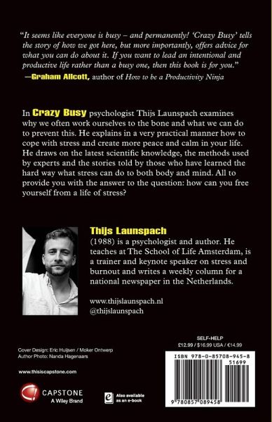 In Crazy Busy acclaimed psychologist Thijs Launspach examines why we often work ourselves to the bone and what we can do to prevent this. He explains how to cope with stress and create more peace and calm in your life. He draws on the latest scientific knowledge, the methods used by experts and the stories told by those who have learned the hard way what stress can do to both body and mind. All to provide you with the answer to the question: how can you free yourself from a life of stress?