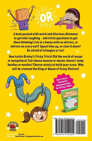 Crazy? You bet! It's like 'Would You Rather?' with rocket boosters! This is a book of choices with a difference. Weird and hilarious dilemmas will get kids laughing; tricky trivia questions will get them thinking! Impossible decisions are illustrated throughout with the craziest of cartoons. Live in a house with no mirrors, or mirrors on every wall? Speed time up, or slow it down? Be afraid of triangles or ice? You can also expect a few icky ones that you might not want to read over breakfast, but 10-year-olds will love! Then it gets competitive as kids take on Brainy's Tricky Trivia questions. Which is the best choice: rid the world of wasps or mosquitoes? Eat cheese mousse or moose cheese? Jump hurdles or nurdles? Kids will love finding out the 'right' answer! Each choice has a score, depending on how mad, bad or crazy it is. Who will be crowned the King or Queen of Crazy Choices? It's a game book that kids will want to read and play with friends, parents and anyone else who'll listen! Look out for the other books in the Crazy Choices series for ages 6 to 11 - and the companion Awesome Jokes and Fantastic Wordsearch series, too!