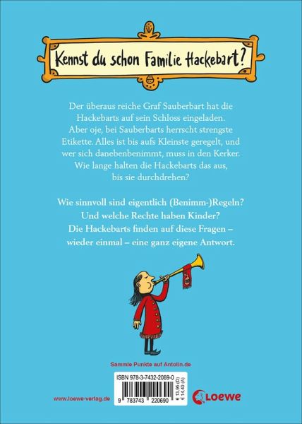Das kostbarste, was Walter Hackebart besitzt, ist eine seltene historische Klobürste. Abgesehen natürlich von seiner Frau Adrijana und den vier Kindern: Brooklyn, Zosch, Mönkemeier und Lulu. Als Walter das wertvolle Stück an den überaus reichen Grafen Sauberbart verkaufen will, wird die ganze Familie auf das gräfliche Schloss eingeladen. Aber oje, bei Sauberbarts herrscht strengste Etikette. Alles ist bis aufs Kleinste geregelt, und wer sich danebenbenimmt, muss in den Kerker. Wie lange halten die Hackebarts das aus, bis sie durchdrehen?