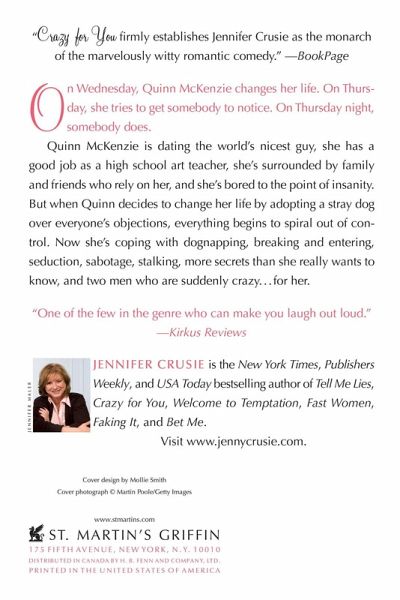 On Wednesday, Quinn McKenzie changes her life. On Thursday, she tries to get somebody to notice. On Thursday night, somebody does. Quinn McKenzie is dating the world's nicest guy, she has a good job as a high school art teacher, she's surrounded by family and friends who rely on her, and she's bored to the point of insanity. But when Quinn decides to change her life by adopting a stray dog over everyone's objections, everything begins to spiral out of control. Now she's coping with dognapping, breaking and entering, seduction, sabotage, stalking, more secrets than she really wants to know, and two men who are suddenly crazy . . . for her.…mehr
