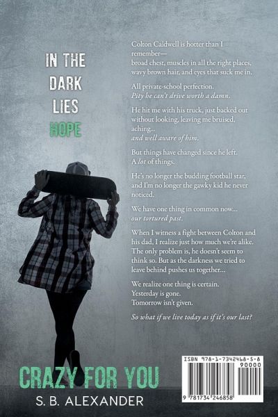 One boy looking for salvation. One girl yearning for hope. Colton Caldwell is hotter than I remember-broad chest, muscles in all the right places, wavy brown hair, and eyes that suck me in. All private-school perfection. Pity he can't drive worth a damn. He hit me with his truck, just backed out without looking, leaving me bruised, aching... and well aware of him. But things have changed since he left. A lot of things. He's no longer the budding football star, and I'm no longer the gawky kid he never noticed. We have one thing in common now... our tortured past. When I witness a fight between Colton and his dad, I realize just how much we're alike. The only problem is, he doesn't seem to think so. But as the darkness we try to leave behind pushes us together... We realize one thing is certain. Yesterday is gone. Tomorrow isn't given. So what if we live today as if it's our last?
