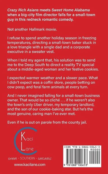 Crazy Rich Asians meets Sweet Home Alabama when a big-city film director falls for a small-town guy in this redneck romantic comedy. Not another Hallmark movie. I refuse to spend another holiday season in freezing temperatures, directing a small-town baker stuck in a love triangle with a single dad and a corporate executive in a sweater vest. When I told my agent that, his solution was to send me to the Deep South to direct a reality TV special about a middle-aged woman and her festive cookies. I expected warmer weather and a slower pace. What I didn't expect was a coffin store, people betting on cow poop, and feral farm animals at every turn. And I never imagined falling for a small-town business owner. That would be so cliché . . . if he weren't also the town's only Uber driver, my temporary landlord, and the son of our cookie-baking star. But he's the most genuine, caring man I've ever met. Even if he is out on parole from the county jail.