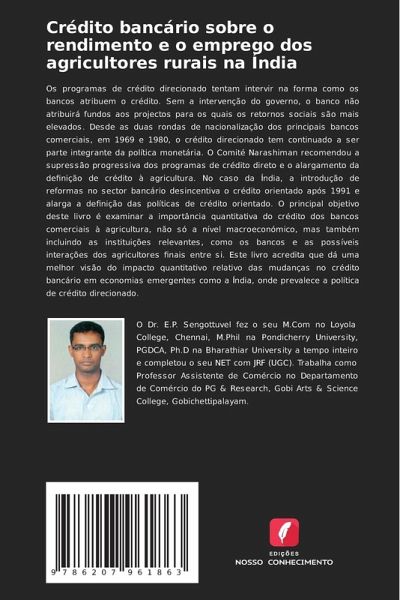 Os programas de crédito direcionado tentam intervir na forma como os bancos atribuem o crédito. Sem a intervenção do governo, o banco não atribuirá fundos aos projectos para os quais os retornos sociais são mais elevados. Desde as duas rondas de nacionalização dos principais bancos comerciais, em 1969 e 1980, o crédito direcionado tem continuado a ser parte integrante da política monetária. O Comité Narashiman recomendou a supressão progressiva dos programas de crédito direto e o alargamento da definição de crédito à agricultura. No caso da Índia, a introdução de reformas no sector bancário desincentiva o crédito orientado após 1991 e alarga a definição das políticas de crédito orientado. O principal objetivo deste livro é examinar a importância quantitativa do crédito dos bancos comerciais à agricultura, não só a nível macroeconómico, mas também incluindo as instituições relevantes, como os bancos e as possíveis interações dos agricultores finais entre si. Este livro acredita que dá uma melhor visão do impacto quantitativo relativo das mudanças no crédito bancário em economias emergentes como a Índia, onde prevalece a política de crédito direcionado.