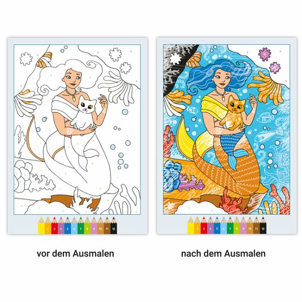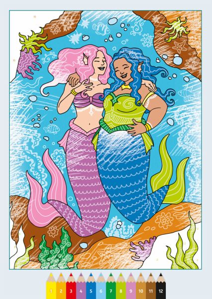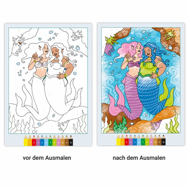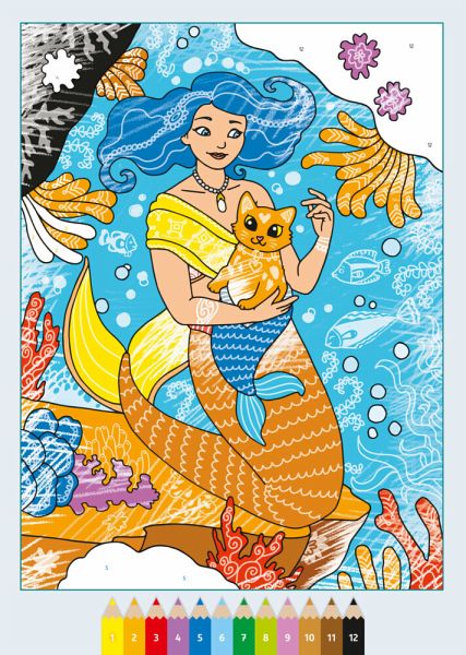 Malen nach Zahlen - jetzt auf magischem Papier! Meerjungfrauen malen wie die Profis ist mit diesem Malbuch kein Problem
