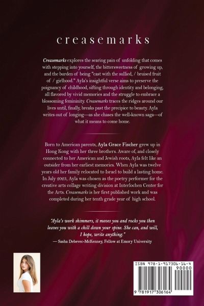 Ayla explores the bitter sweetness of growing up and the hurdles of stepping into womanhood, and being "cast with the sullied, / bruised fruit of / girlhood." Her insightful verse aims to preserve the poignancy of childhood and reveal the pains of growing up and moving countries, sifting through identity all flavored by vivid memories and the struggle to embrace a blossoming femininity.