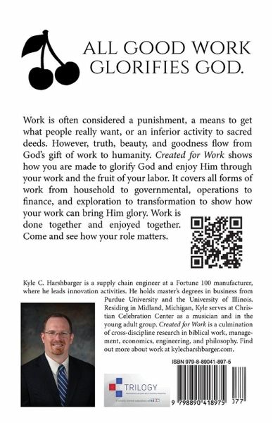 ALL GOOD WORK GLORIFIES GOD. Work is often considered a punishment, a means to get what people really want, or an inferior activity to sacred deeds. However, truth, beauty, and goodness flow from God's gift of work to humanity. Created for Work shows how you are made to glorify God and enjoy Him through your work and the fruit of your labor. It covers all forms of work from household to governmental, operations to finance, and exploration to transformation to show how your work can bring Him glory. Work is done together and enjoyed together. Come and see how your role matters.