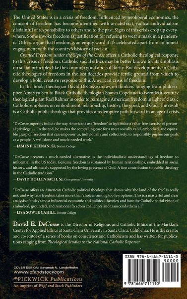 The United States is in a crisis of freedom. Influenced by neoliberal economics, the concept of freedom has become identified with an abstract, radical individualism disdainful of responsibility to others and to the past. Signs of this crisis crop up everywhere. Some invoke freedom as justification for refusing to wear a mask in a pandemic. Others argue that freedom is an empty word if it's celebrated apart from an honest engagement with the country's history of racism. Created Freedom under the Sign of the Cross offers a Catholic theological response to this crisis of freedom. Catholic social ethics may be better known for its emphasis on social principles like the common good and solidarity. But developments in Catholic theologies of freedom in the last decades provide fertile ground from which to develop a bold, creative response to this American crisis of freedom. In this book, theologian David DeCosse draws on thinkers ranging from philosopher Amartya Sen to Black Catholic theologian Shawn Copeland to twentieth-century theological giant Karl Rahner in order to reimagine American freedom in light of classic Catholic emphases on embodiment, relationship, history, the good, and God. The result is a Catholic public theology that provides a redemptive path forward in an age of crisis.