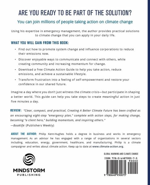 Are you ready to be part of the solution? You can join millions of people taking action on climate change. Using his expertise in emergency management, the author provides practical solutions to climate change that you can apply in your daily life. What you will gain from this book: ¿ Find out how to promote system change and influence corporations to reduce their emissions now. ¿ Discover enjoyable ways to communicate and connect with others, while creating community and increasing momentum for change. ¿ Download a free Climate Action Guide to help you take action, reduce emissions, and achieve a sustainable lifestyle. ¿ Transform frustration into a feeling of self-empowerment and restore your confidence in our shared future. Imagine a day where you don't just witness the climate crisis-but participate in shaping a better world. This guide can help you take steps to create meaningful action in just five minutes a day.