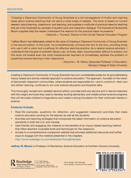 Creating a Classroom Community of Young Scientists helps teachers - both pre-service and in-service - to develop exciting science programs in their classrooms. This book provides the groundwork for designing and implementing a science program that takes into account the latest research in teaching and learning. It provides an approach that will capture children's imaginations, stimulate their curiosity and create a strong foundation for their continued interest in, and appreciation of, science and the world in which they live. The book is designed to be user-friendly, and offers an approach to teaching science that is exciting for teachers as well. This thoroughly revised, second edition focuses on making inquiry more explicit both in terms of the process of inquiry and teaching in ways that capitalize on children's curiosity and questions. New material has also been added on U.S. and Canadian science standards, as well as professional standards for teachers.