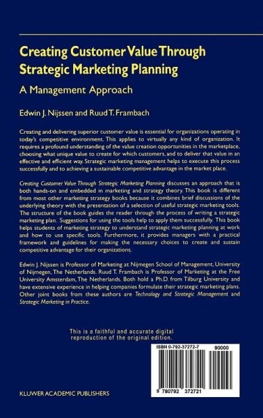 Creating Customer Value Through Strategic Marketing Planning discusses an approach that is both hands-on and embedded in marketing and strategy theory. This book is different from most other marketing strategy books because it combines brief discussions of the underlying theory with the presentation of a selection of useful strategic marketing tools. The structure of the book guides the reader through the process of writing a strategic marketing plan. Suggestions for using the tools help to apply them successfully. This book helps students of marketing strategy to understand strategic marketing planning at work and how to use specific tools. Furthermore, it provides managers with a practical framework and guidelines for making the necessary choices to create and sustain competitive advantage for their organizations.
