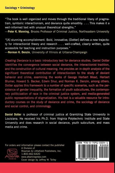 Creating Deviance is a basic text introducing deviance from an interactionist perspective, placing the study of deviant behavior within the broader terrain of cultural meaning. By examining the persistence of gender inequality, the formation of youth subcultures, and other issues Dotter provides a valuable resource for the study of deviance and crime and for introductory courses in sociology on deviance and social control.