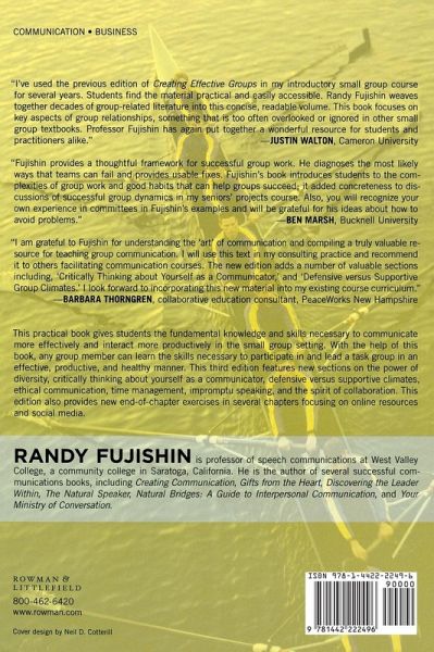 Creating Effective Groups, Third Edition gives students the fundamental knowledge and skills necessary to communicate more effectively and interact more productively in the small group setting. This new edition features all new sections on diversity, group dynamics, online resources, and social media.