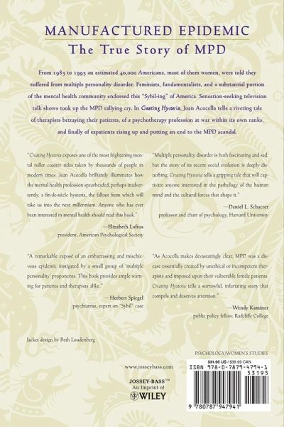 In 1989 Elizabeth Carlson, a Minneapolis housewife, went to a psychotherapist for help with depression. Before long the therapist suggested to her that perhaps her problem was actually multiple personality disorder (MPD), a condition that according to the "experts" was connected to childhood abuse. With coaching from the therapist-and under heavy medication-Carlson soon came up with more than twenty-five personalities, including Wild Child, Sister Mary Margaret, and Little Miss Fluff. Horrifying abuse memories invaded her consciousness. She had been molested, she said, by her parents, her grandparents, her great-grandparents. Her family was part of a satanic cult. They raped and killed. They aborted babies and ate the afterbirth. Or did they? In Creating Hysteria Joan Acocella tells how, over the past three decades, thousands of women seeking help for various psychological problems were told that they had multiple personality disorder and were sucked into this nightmarish therapy. In session after session, under their therapists' prompting, they produced "memories"-and screaming reenactments-of childhood victimization. Asked to search within themselves for hidden personalities, they came up with entire squadrons: children, harlots, angels, devils. Prior to the 1970s, multiple personality disorder was considered an exotically rare condition. But beginning in the 1980s, an estimated 40,000 people, most of them women, had been initiated into this newly popular disorder. This groundbreaking book describes how a group of reckless therapists used hypnosis, drugs, and sheer persuasion to mold their patients' symptoms into multiple personality disorder. While these practitioners were publishing books and running workshops on how to "spot" MPD, the patients were languishing in hospitals--in some cases for years. They sacrificed their marriages, their jobs. Some even lost their children. Creating Hysteria analyzes the forces that fed into the MPD epidemic: media sensationalism, Christian fundamentalism, the culture wars, and feminism. (Though ruinous to women, this diagnosis was endorsed by many feminists.) Money was another factor. MPD, the experts said, took years to cure. An MPD diagnosis was one way of getting around the new restrictions placed on psychotherapy by managed care. Eventually, victims of this cruel hoax discovered what had happened to them and began suing their therapists. As a result, the MPD empire is now crumbling. In her brilliant concluding chapters, Acocella describes the damage this bizarre craze did to the profession of psychotherapy, to the child-protection movement, and to women's rights. The patients ultimately triumphed, but the wreckage will take years to clear away. Manufactured Epidemic: The True Story of MPD From 1985 to 1995 an estimated 40,000 Americans, most of them women, were told they suffered from multiple personality disorder. Feminists, fundamentalists, and a substantial portion of the mental health community endorsed this "Sybil-ing" of America. Sensation-seeking television talk shows took up the MPD rallying cry. In Creating Hysteria, Joan Acocella tells a riveting tale of therapists betraying their patients, of a psychotherapy profession at war within its own ranks, and finally of expatients rising up and putting an end to the MPD scandal. "Creating Hysteria exposes one of the most frightening mental roller coaster rides taken by thousands of people in modern times. Joan Acocella brilliantly illuminates how the mental health profession spearheaded, perhaps inadvertently, a fin-de-siècle hysteria, the fallout from which will take us into the next millennium. Anyone who has ever been interested in mental health should read this book." --Elizabeth Loftus, president, American Psychological Society "A remarkable exposé of an embarrassing and mischievous epidemic instigated by a small group of 'multiple personality' proponents. This book provides ample warning for patients and therapists alike." --Herbert Spiegel, psychiatrist, expert on "Sybil" case "Multiple personality disorder is both fascinating and sad, but the story of its recent social evolution is deeply disturbing. Creating Hysteria tells a gripping tale that will captivate anyone interested in the pathology of the human mind and the cultural forces that shape it." --Daniel L. Schacter, professor and chair of psychology, Harvard University "As Acocella makes devastatingly clear, MPD was a disease essentially created by unethical or incompetent therapists and imposed upon their vulnerable female patients. Creating Hysteria tells a sorrowful, infuriating story that compels and deserves attention." --Wendy Kaminer, public policy fellow, Radcliffe College