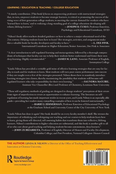 Most of our students neither know how learning works nor what they have to do to ensure it, to the detriment both of their studies and their development as lifelong learners.The point of departure for this book is the literature on self-regulated learning that tells us that deep, lasting, independent learning requires learners to bring into play a range of cognitive skills, affective attitudes, and even physical activities - about which most students are wholly unaware; and that self-regulation, which has little to do with measured intelligence, can be developed by just about anyone and is a fundamental prerequisite of academic success.Linda Nilson provides the theoretical background to student self-regulation,the evidence that it enhances achievement, and the strategies to help students develop it. She presents an array of tested activities and assignments through which students can progressively reflect on, monitor and improve their learning skills; describes how they can be integrated with different course components and on various schedules; and elucidates how to intentionally and seamlessly incorporate them into course design to effectively meet disciplinary and student development objectives. Recognizing that most faculty are unfamiliar with these strategies, she also recommends how to prepare for introducing them into the classroom and adding more as instructors become more confident using them.The book concludes with descriptions of courses from different fields to offer models and ideas for implementation. At a time of so much concern about what our students are learning in college and how well prepared they are for the challenges of tomorrow's economy and society, self-regulated learning provides a reassuring solution, particularly as studies indicate that struggling students benefit the most from practicing it.