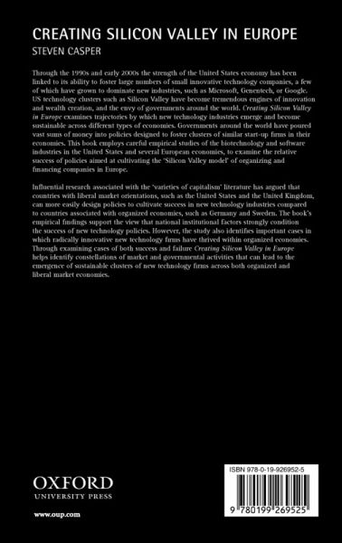 Through the 1990s and early 2000s the strength of the United States economy has been linked to its ability to foster large numbers of small innovative technology companies, a few of which have grown to dominate new industries, such as Microsoft, Genentech, or Google. US technology clusters such as Silicon Valley have become tremendous engines of innovation and wealth creation, and the envy of governments around the world. Creating Silicon Valley in Europe examines trajectories by which new technology industries emerge and become sustainable across different types of economies. Governments around the world have poured vast sums of money into policies designed to foster clusters of similar start-up firms in their economies. This book employs careful empirical studies of the biotechnology and software industries in the United States and several European economies, to examine the relative success of policies aimed at cultivating the 'Silicon Valley model' of organizing and financing companies in Europe. Influential research associated with the 'varieties of capitalism' literature has argued that countries with liberal market orientations, such as the United States and the United Kingdom, can more easily design policies to cultivate success in new technology industries compared to countries associated with organized economies, such as Germany and Sweden. The book's empirical findings support the view that national institutional factors strongly condition the success of new technology policies. However, the study also identifies important cases in which radically innovative new technology firms have thrived within organized economies. Through examining case of both success and failure Creating Silicon Valley in Europe helps identify constellations of market and governmental activities that can lead to the emergence of sustainable clusters of new technology firms across both organized and liberal market economies.