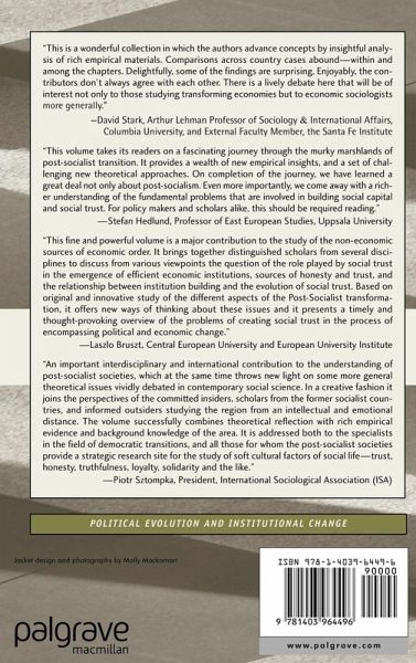 "This fine and powerful volume is a major contribution to the study of the non-economic sources of economic order. It brings together distinguished scholars from several disciplines to discuss from various viewpoints the question of the role played by social trust in the emergence of efficient economic institutions, sources of honesty and trust, and the relationship between institution building and the evolution of social trust. Based on original and innovative study of the different aspects of the Post-Socialist transformation, it offers new ways of thinking about these issues and it presents a timely and thought provoking overview of the problems of creating social trust in the process of encompassing political and economic change." - Laszlo Bruszt, Central European University and European University Institute