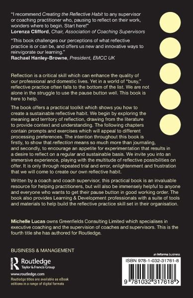 "It is empirically evidenced that reflective practice is an excellent method of raising awareness, an essential attribute for coaches & mentors. In Creating the Reflective Habit Michelle provides an invaluable resource for coaches, mentors and anyone who recognises the value of taking a moment to pause. The content is awash with detail, information, and most importantly, exercises and activities that practitioners can use to maximise the benefit they gain from their own reflections. This is the absolute 'must' for transferring theory into action.