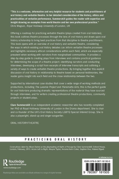 "This is a welcome, informative and very helpful resource for students and practitioners of oral history and verbatim theatre. In her detailed consideration of the history, ethics and practicalities of verbatim performance, Summerskill guides the reader with expertise and insight drawing on examples from world theatre and her own professional practice."