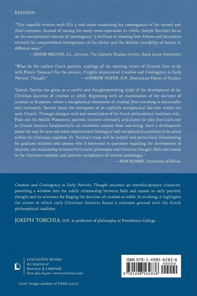 Preface Introduction Part I: In the Beginning: Scriptural and Platonic Perspectives Chapter 1: A Scriptural Point of Departure Chapter 2: Plato on Cosmological Origins Chapter 3: Middle Platonic Responses Part II: The Shape of Things to Come Chapter 4: The Creation Account of Philo Judaeus Chapter 5:Creation and Cosmos in the Apostolic Fathers Part III: Forging the Doctrine Chapter 6: The Christian Platonism of Justin Martyr Chapter 7: The Christian Philosophy of Athenagoras of Athens Chapter 8: Tatian of Syria: The 'Stages' of Creation Chapter 9: Theophilus of Antioch: At the Threshold Chapter 10: The Alexandrian School Epilogue: Creation as 'Beginning' Bibliography Index About the Author