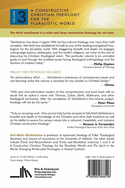 The third installment in a wide and deep constructive theology for our time This third volume of Veli-Matti Karkkainen's ambitious five volume theology project develops a Christian theology of creation and humanity (theological anthropology) in dialogue with the Christian tradition, with contemporary theology in all its global and contextual diversity, and with other major living faiths -- Judaism, Islam, Buddhism, and Hinduism. In constructing his theology of creation and humanity, Karkkainen uniquely engages the natural sciences, including physical, cosmological, and neuroscientific theories. He devotes particular attention to the topics of divine action in a world subjected to scientific study, environmental pollution, human flourishing, and the theological implications of evolutionary theory -- with regard to both cosmos and humanity.
