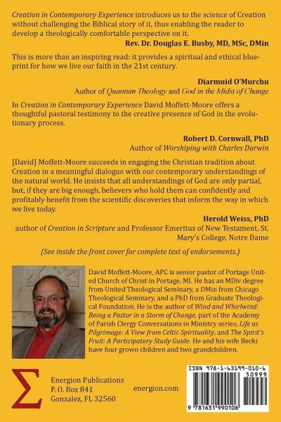 How do our beliefs about creation impact our action in the world today? Is God's creation an activity in the present as well as the past? What we believe about God as creator impacts our theology and action in many ways. In this book, Dr. David Moffett-Moore will examine some of these implications by looking at topics as diverse as quantum physics and chaos theory, hermeneutics, ethics, and how we tell stories of faith.Can one accept the major theories of science, including evolution and still be a faithful believer? What do these findings of science mean for the way we do theology in the 21st century? Dr. Moffett-Moore not only believes that we can accept the findings of science and still be faithful Christians, he believes that discoveries in fields such as physics and biology can help us talk about God in a more relevant and compelling way than we ever have before. And when we talk about God in this new way, we will also find a new call to live in a way that is faithful both to the wonders of the physical Creation, and also to scripture. This book provides an excellent resource to explore the way in which understanding God as creator can impact our lives and our service to others.