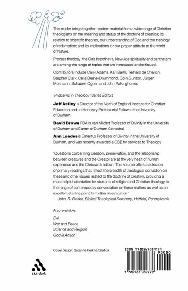 This reader brings together modern material from a wide range of Christian theologians on the meaning and status of the doctrine of creation; its relation to scientific theories, our understanding of God and the theology of redemption; and its implications for our proper attitude to the world of Nature. Process theology, the Gaia hypothesis, New Age spirituality, and pantheism are among the range of topics that are introduced and critiqued. Contributors include Carol Adams, Karl Barth, Teilhard de Chardin, Celia Deane-Drummond, Colin Gunton, Jurgen Moltmann, Schubert Ogden, John Polkinghorne.
