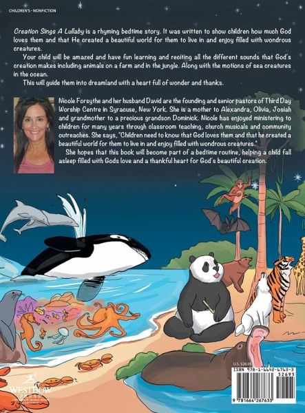 Creation Sings A Lullaby is a rhyming bedtime story. It was written to show children how much God loves them and that He created a beautiful world for them to live in and enjoy filled with wondrous creatures. Your child will be amazed and have fun learning and reciting all the different sounds that God's creation makes including animals on a farm and in the jungle. Along with the motions of sea creatures in the ocean. This will guide them into dreamland with a heart full of wonder and thanks.
