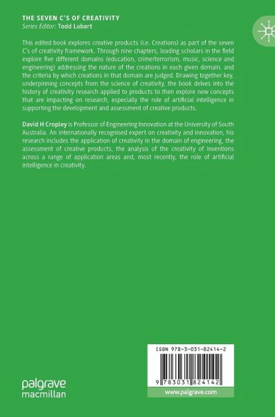 This edited book explores creative products (i.e. Creations) as part of the seven C's of creativity framework. Through nine chapters, leading scholars in the field explore five different domains (education, crime/terrorism, music, science and engineering) addressing the nature of the creations in each given domain, and the criteria by which creations in that domain are judged. Drawing together key, underpinning concepts from the science of creativity, the book delves into the history of creativity research applied to products to then explore new concepts that are impacting on research, especially the role of artificial intelligence in supporting the development and assessment of creative products.