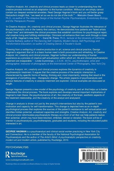 Creative Analysis: Art, Creativity and Clinical Process explores the dynamics of creativity in psychoanalytic treatment. It argues that the creative process of the analytic interaction is characterized by specific forms of feeling, thinking and most importantly, relating that result in the emergence of something new - therapeutic change. The artistic aspects of psychoanalysis and various features of creativity in analytic treatment are explored. ¿Clinical examples are discussed at length. George Hagman presents a new model of the psychology of creativity and art that helps us to better understand the clinical process. The book explores and develops several important implications of Hagman's main thesis: the psychodynamics of art, the creativity of the brain, aesthetic aspects of the treatment relationship, the creativity of the analyst and analysand. Change in analysis is driven not just by the analyst's interventions but the patient's own motivation and capacity for self-transformation. This change is depicted here as a depth psychological process which explores the sources of the patient's resistance to self-actualization and identifies hidden potential, unrealized capacities and strengths. Creative Analysis: Art, Creativity and Clinical Process reformulates psychoanalytic therapy as a form of art that can help patients realize their potential which may have been blocked, inhibited, denied or derailed. The book will be of interest to psychoanalysts, psychotherapists, graduates and students, including the educated public interested in art.