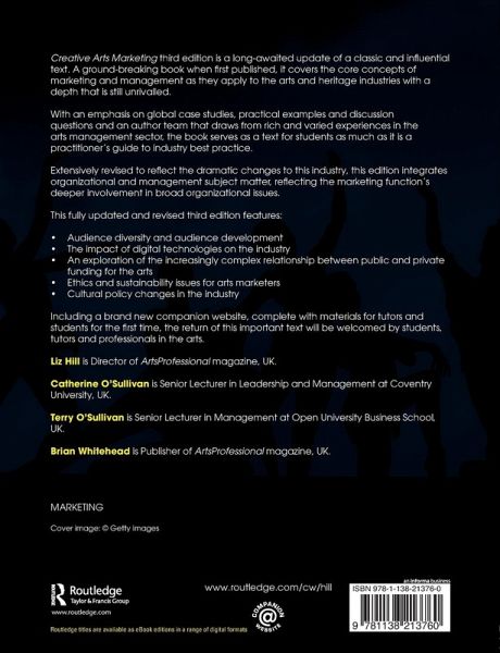 Creative Arts Marketing third edition is a long-awaited update of a classic and influential text. A ground-breaking book when first published, it covers the core concepts of marketing and management as they apply to the arts and heritage industries with a depth that is still unrivalled.