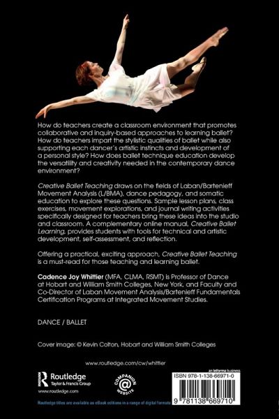 Creative Ballet Teaching draws on the fields of Laban/Bartenieff Movement Analysis (L/BMA), dance pedagogy, and somatic education to explore these questions. Sample lesson plans, class exercises, movement explorations, and journal writing activities specifically designed for teachers bring these ideas into the studio and classroom. A complementary online manual, Creative Ballet Learning, provides students with tools for technical and artistic development, self-assessment, and reflection.