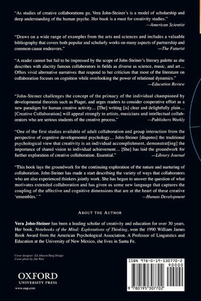 Vera John-Steiner has been a leading scholar of creativity and education for over 30 years. Her book, Notebooks of the Mind: Explorations of Thinking, won the 1990 William James Book Award from the American Psychological Association. A Professor of Linguistics and Education at the University of New Mexico, she lives in Santa Fe.