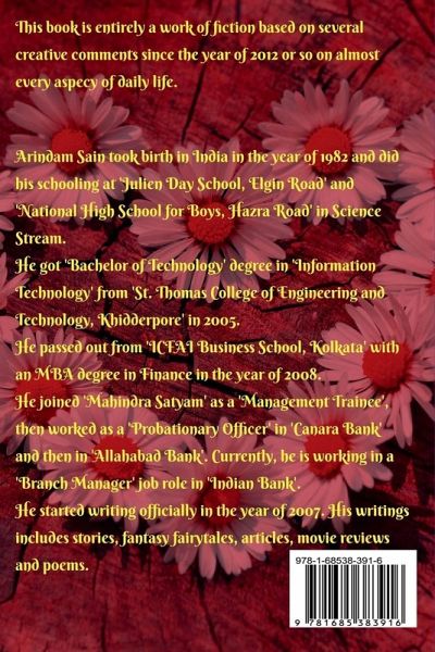 This book is entirely a work of fiction based on several creative comments since the year of 2012 or so on almost various aspects of life.