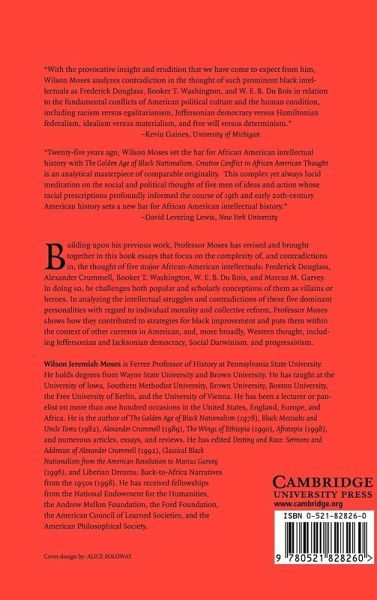 Building upon his previous work and using Richard Hofstadter's The American Political Tradition as a model, Professor Moses has revised and brought together in this book essays that focus on the complexity of, and contradictions in, the thought of five major African-American intellectuals: Frederick Douglass, Alexander Crummell, Booker T. Washington, W. E. B. DuBois and Marcus M. Garvey. In doing so, he challenges both popular and scholarly conceptions of them as villains or heroes. In analyzing the intellectual struggles and contradictions of these five dominant personalities with regard to individual morality and collective reform, Professor Moses shows how they contributed to strategies for black improvement and puts them within the context of other currents of American thought, including Jeffersonian and Jacksonian democracy, Social Darwinism, and progressivism.