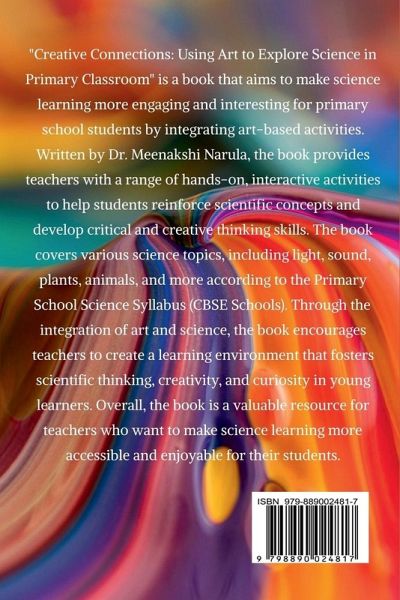 "Creative Connections: Using Art to Explore Science in Primary Classroom" is a book that seeks to revolutionize science education by integrating art-based activities. By providing teachers with a range of hands-on, interactive activities, this book aims to make science learning more accessible, engaging, and fun for young learners. Through this book, I hope to inspire teachers to explore the exciting possibilities of integrating art and science in their classrooms and help them create a learning environment that encourages scientific thinking, creativity, and innovation.