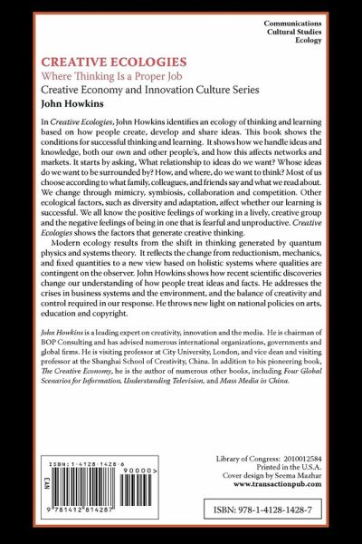 The main question of our age is how we live our lives. As we struggle with this question, we face others. How do we handle ideas and knowledge, both our own and those of others? What relationship to ideas do we want? Whose ideas do we want to be surrounded by? Where do we want to think? Most choose, or have the choice made for them, according to what family, colleagues, and friends do and say and what we read about, and a more or less rational calculation of the odds. Modern ecology results from the shift in thinking generated by quantum physics and systems theory, from the old view based on reductionism, mechanics, and fixed quantities to a new view based on holistic systems where qualities are contingent on the observer and on each other. This perception changes how people treat ideas and facts, certainties and uncertainties, and affects both art and science. Worldwide it is part of the process of understanding the current crisis in the environment, and the balance of economy, creativity, and control required in our response. The book's starting point is the growing role that information has played in industrial economies since the 1800s and especially in the last thirty years. It is an attempt to identify ecology of thinking and learning. It is also based on the need to escape from old, industrial ways and become more attuned to how people actually borrow, develop, and share ideas. Throughout the book, Howkins asks questions and offers signposts. He gives no guarantee that creative ecologies will be sustainable, but shows what should be aimed for.