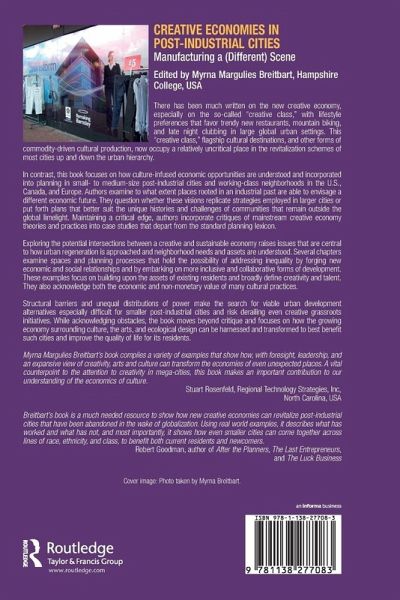 There has been much written on the new creative economy, but most work focuses on the so-called 'creative class,' with lifestyle preferences that favor trendy new restaurants, mountain biking, and late night clubbing. This 'creative class,' flagship cultural destinations, and other forms of commodity-driven cultural production, now occupy a relatively uncritical place in the revitalization schemes of most cities up and down the urban hierarchy. In contrast, this book focuses on small- to medium-size post-industrial cities in the US, Canada, and Europe that are trying to redress the effects of deindustrialization and economic decline through cultural economic regeneration. It examines how culture-infused economic opportunities are being incorporated into planning in distinct ways, largely under the radar, in many working class communities and considers to what extent places rooted in an industrial past are able to envisage a different economic future for themselves. It questions whether these visions replicate strategies employed in larger cities or put forth plans that better suit the unique histories and challenges of places that remain outside the global limelight. Exploring the intersection between a cultural and sustainable economy raises issues that are central to how urban regeneration is approached and neighborhood needs and assets are understood. Case studies in this book examine spaces and planning processes that hold the possibility of addressing inequality by forging new economic and social relationships and by embarking on more inclusive and collaborative experiments in culture-based economic development. These examples often focus on building upon the assets of existing residents and broadly define creativity and talent. They also acknowledge both the economic and non-monetary value of cultural practices. This book maintains a critical edge, incorporating left critiques of mainstream creative economy theories and practices into empirical case studies that depart from standard cultural economy discourse. Structural barriers and unequal distributions of power make the search for viable urban development alternatives especially difficult for smaller post-industrial cities and risk derailing even creative grassroots initiatives. While acknowledging these obstacles, this book moves beyond critique and focuses on how the growing economy surrounding culture, the arts, and ecological design can be harnessed and transformed to best benefit such cities and improve the quality of life for its residents.