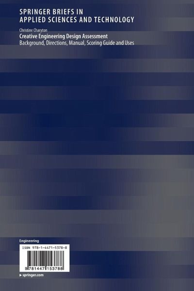 The aim of this book is to disseminate the CEDA tool for use in engineering educational programs, industry, NASA and the military. Creative Engineering Design Assessment (CEDA) Background, Directions, Manual, Scoring Guide and Uses discusses and outlines the need for creativity in our global economy and in engineering design and provides the CEDA tool in effort to achieve this.