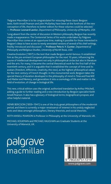 'Palgrave Macmillan is to be congratulated for reissuing these classic Bergson texts. This is a timely decision since Bergson was the great thinker of life and it seems, nearly one hundred years later, that we find ourselves once again required to conceive life. Keith Ansell Pearson and John Mullarkey have been at the forefront of the new conception of life, therefore no better editors for these volumes could be selected.' - Professor Leonard Lawlor, Department of Philosophy, University of Memphis, USA