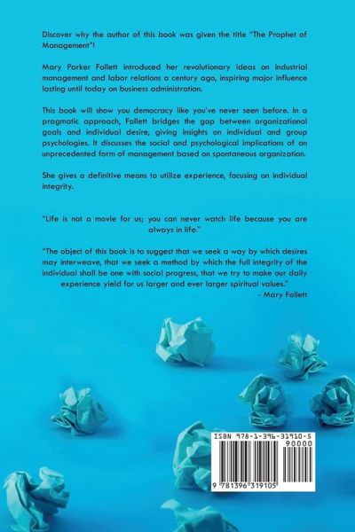 Discover why the author of this book was given the title "The Prophet of Management"! Mary Parker Follett introduced her revolutionary ideas on industrial management and labor relations a century ago, inspiring major influence lasting until today on business administration. This book will show you democracy like you've never seen before. In a pragmatic approach, Follett bridges the gap between organizational goals and individual desire, giving insights on individual and group psychologies. It discusses the social and psychological implications of an unprecedented form of management based on spontaneous organization. She gives a definitive means to utilize experience, focusing on individual integrity. "Life is not a movie for us; you can never watch life because you are always in life." "The object of this book is to suggest that we seek a way by which desires may interweave, that we seek a method by which the full integrity of the individual shall be one with social progress, that we try to make our daily experience yield for us larger and ever larger spiritual values." ~Mary Follett