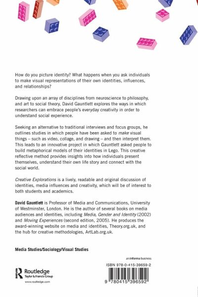 How do you picture identity? What happens when you ask individuals to make visual representations of their own identities, influences, and relationships? Drawing upon an array of disciplines from neuroscience to philosophy, and art to social theory, David Gauntlett explores the ways in which researchers can embrace people's everyday creativity in order to understand social experience. Seeking an alternative to traditional interviews and focus groups, he outlines studies in which people have been asked to make visual things - such as video, collage, and drawing - and then interpret them. This leads to an innovative project in which Gauntlett asked people to build metaphorical models of their identities in Lego. This creative reflective method provides insights into how individuals present themselves, understand their own life story, and connect with the social world. Creative Explorations is a lively and original discussion of identities, media influences, and creativity, which will be of interest to both students and academics.