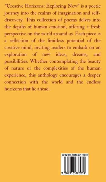 "Creative Horizons: Exploring New" is a poetic journey into the realms of imagination and self-discovery. This collection of poems delves into the depths of human emotion, offering a fresh perspective on the world around us. Each piece is a reflection of the limitless potential of the creative mind, inviting readers to embark on an exploration of new ideas, dreams, and possibilities. Whether contemplating the beauty of nature or the complexities of the human experience, this anthology encourages a deeper connection with the world and the endless horizons that lie ahead. Copyright © 2024 Book Fairy Publishing