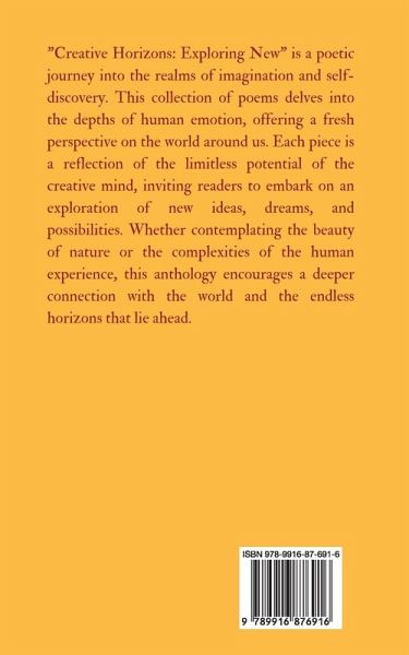 "Creative Horizons: Exploring New" is a poetic journey into the realms of imagination and self-discovery. This collection of poems delves into the depths of human emotion, offering a fresh perspective on the world around us. Each piece is a reflection of the limitless potential of the creative mind, inviting readers to embark on an exploration of new ideas, dreams, and possibilities. Whether contemplating the beauty of nature or the complexities of the human experience, this anthology encourages a deeper connection with the world and the endless horizons that lie ahead. Copyright © 2024 Book Fairy Publishing