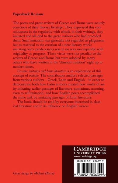 The poets and prose-writers of Greece and Rome were acutely conscious of their literary heritage. They expressed this consciousness in the regularity with which, in their writings, they imitated and alluded to the great authors who had preceded them. Such imitation was generally not regarded as plagiarism but as essential to the creation of a new literary work: imitating one's predecessors was in no way incompatible with originality or progress. These views were not peculiar to the writers of Greece and Rome but were adopted by many others who have written in the 'classical tradition' right up to modern times. Creative Imitation and Latin Literature is an exploration of this concept of imitation. The contributors analyse selected passages from various authors - Greek, Latin and English - in order to demonstrate how Latin authors created new works of art by imitating earlier passages of literature.